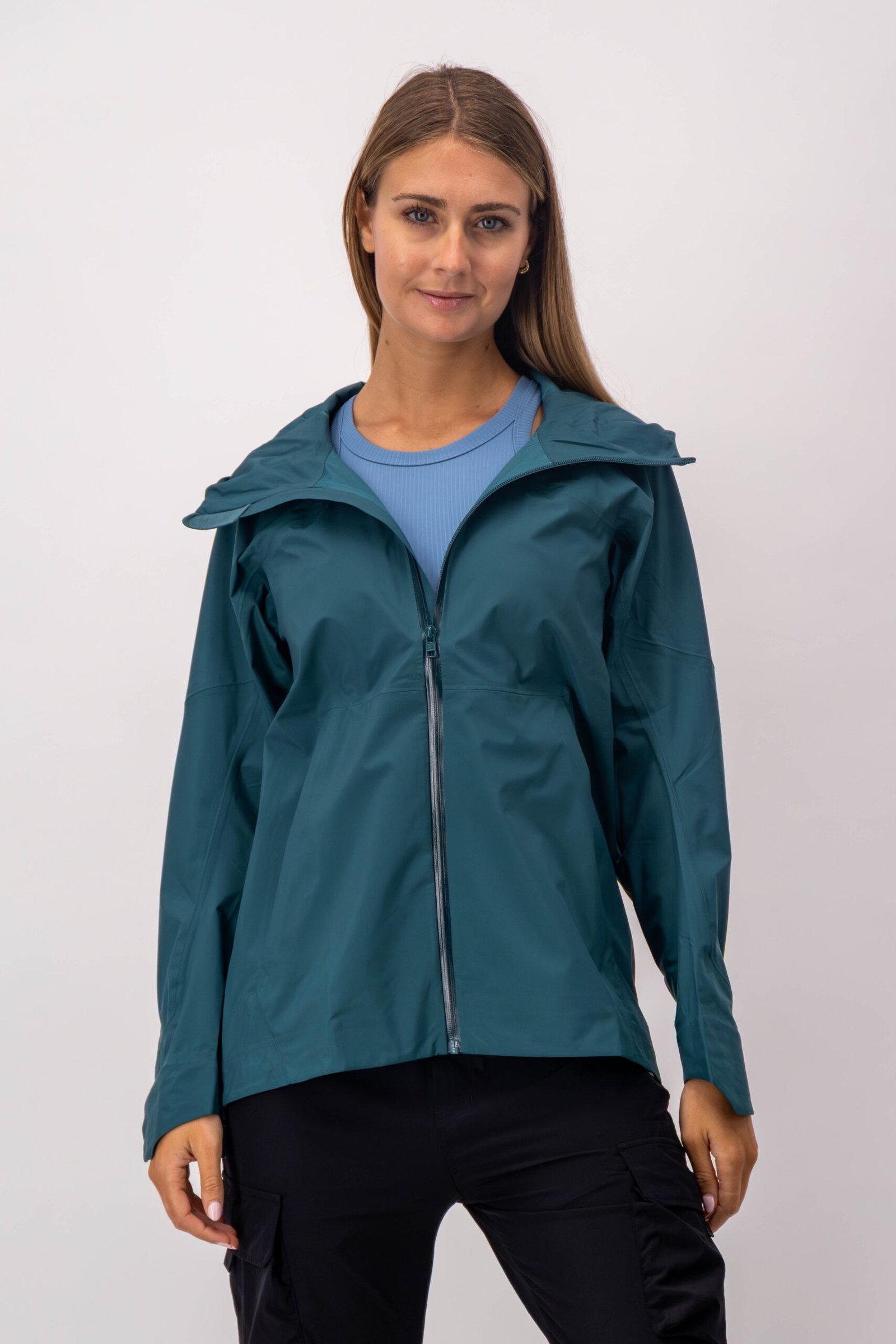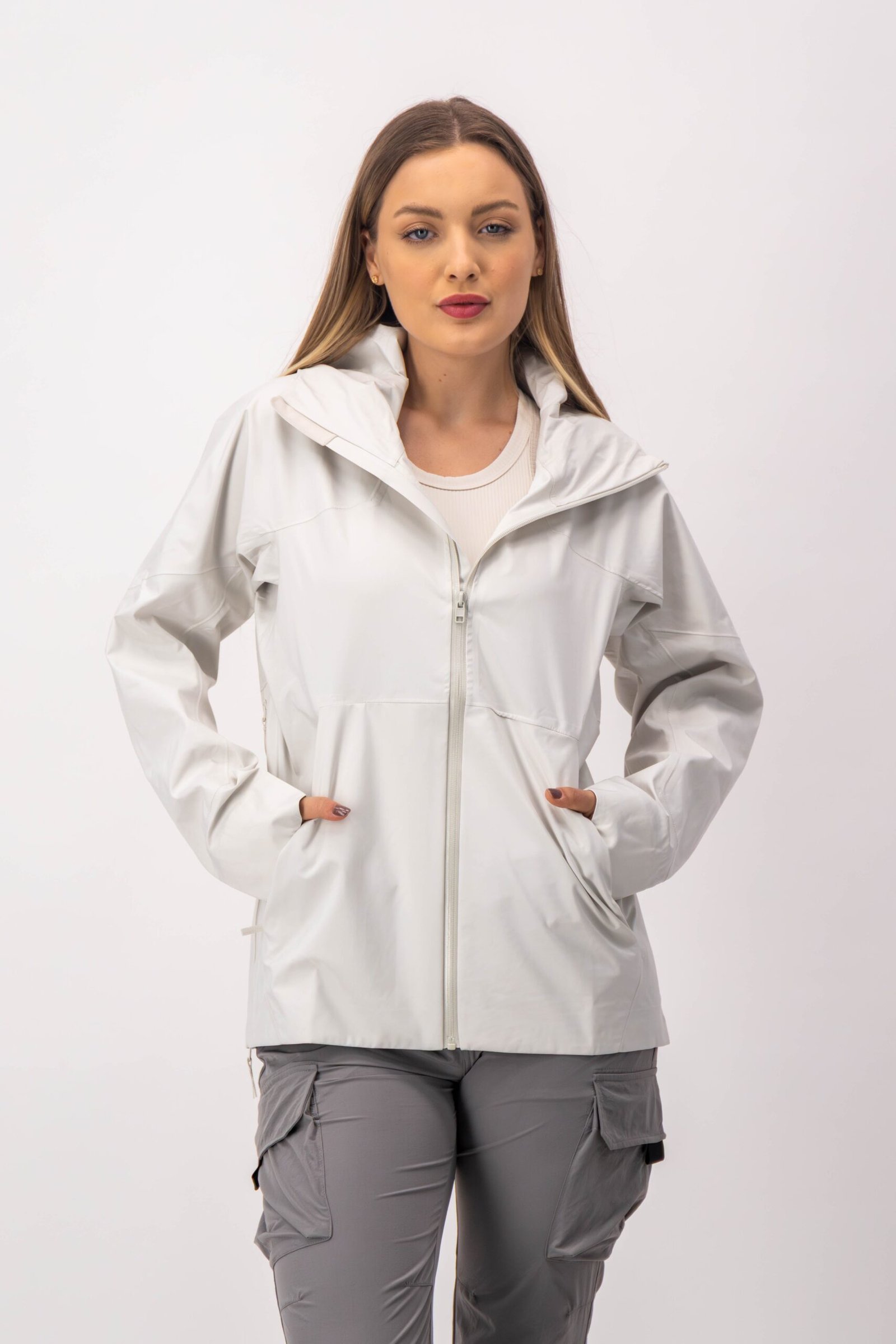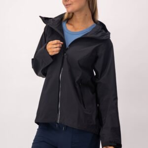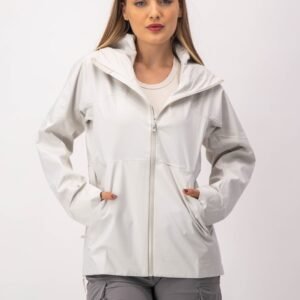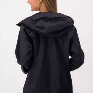 Chamarra de lluvia con tecnología waterproof. Los cierres evitan que pase el agua y las mangas tienen un detalle que permite doblarlas cuando lo necesites.