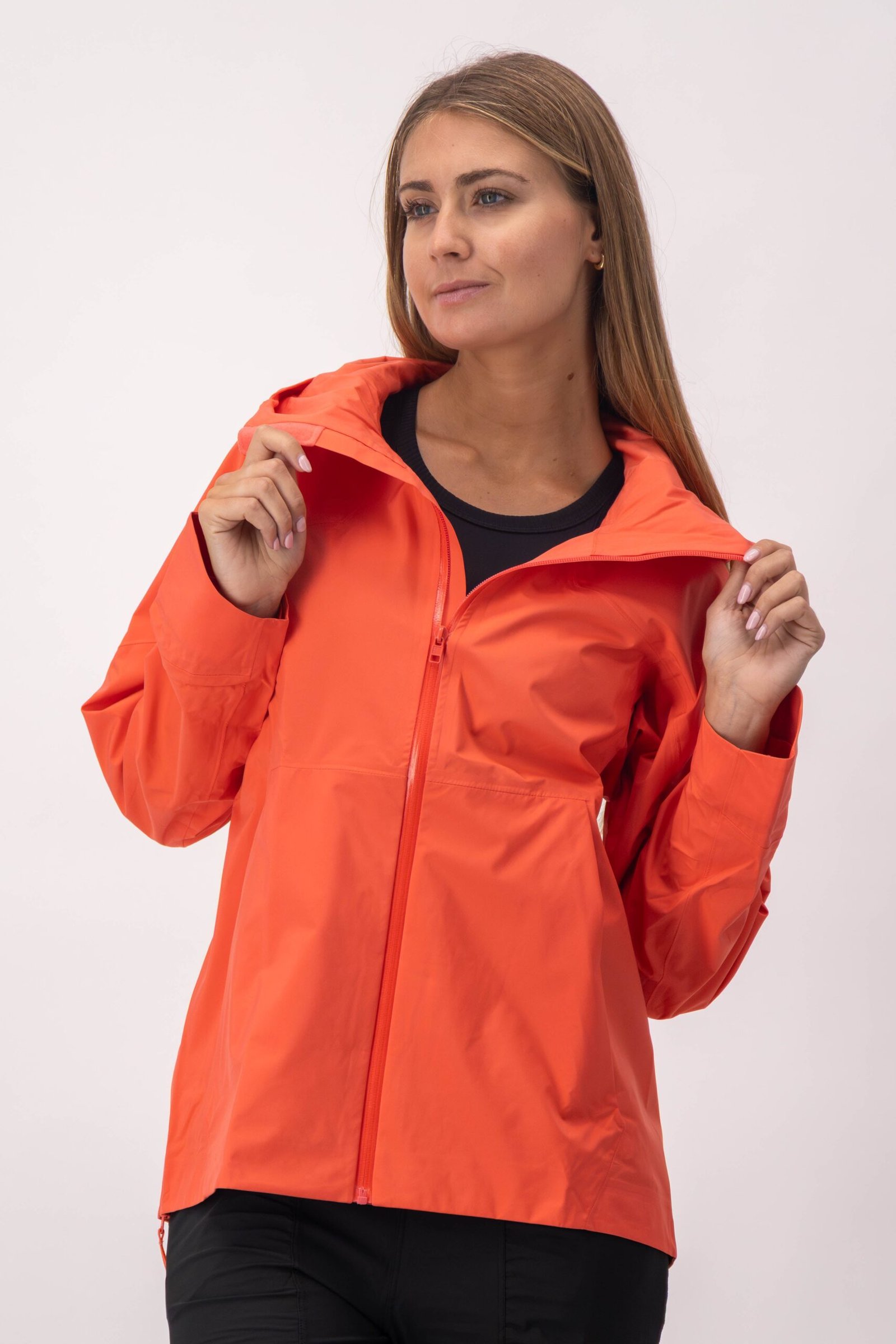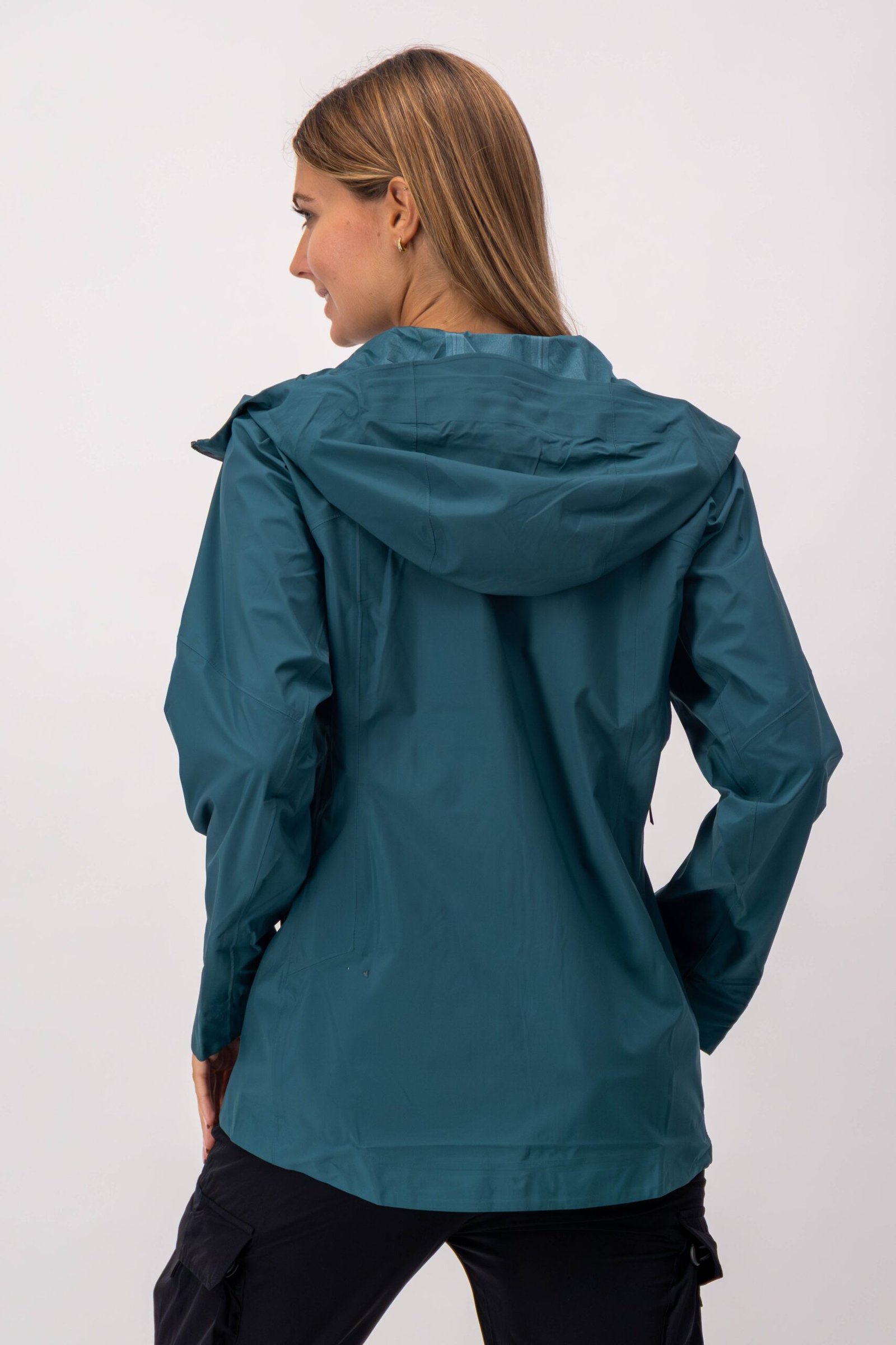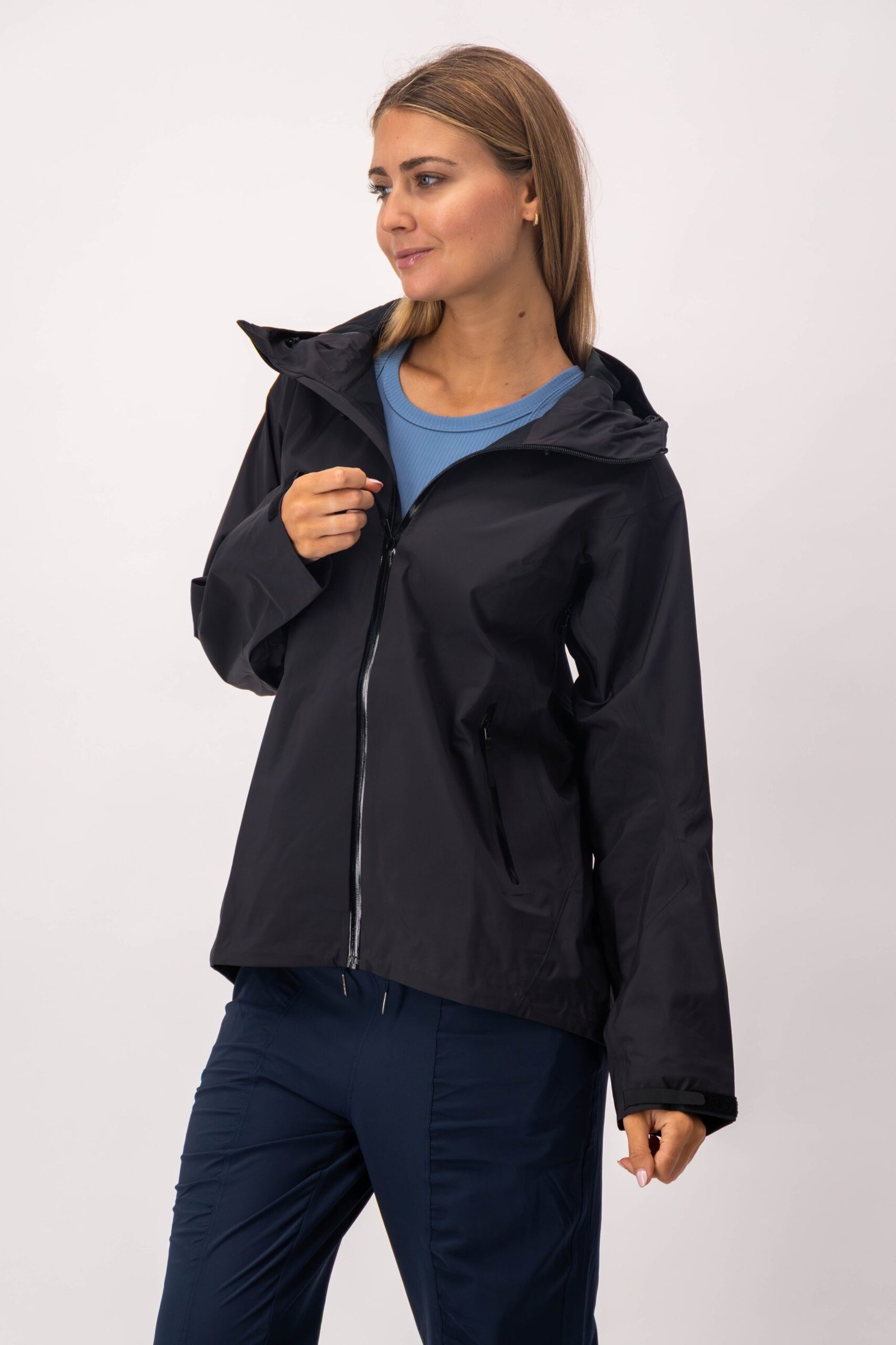 Chamarra de lluvia con tecnología waterproof. Los cierres evitan que pase el agua y las mangas tienen un detalle que permite doblarlas cuando lo necesites.